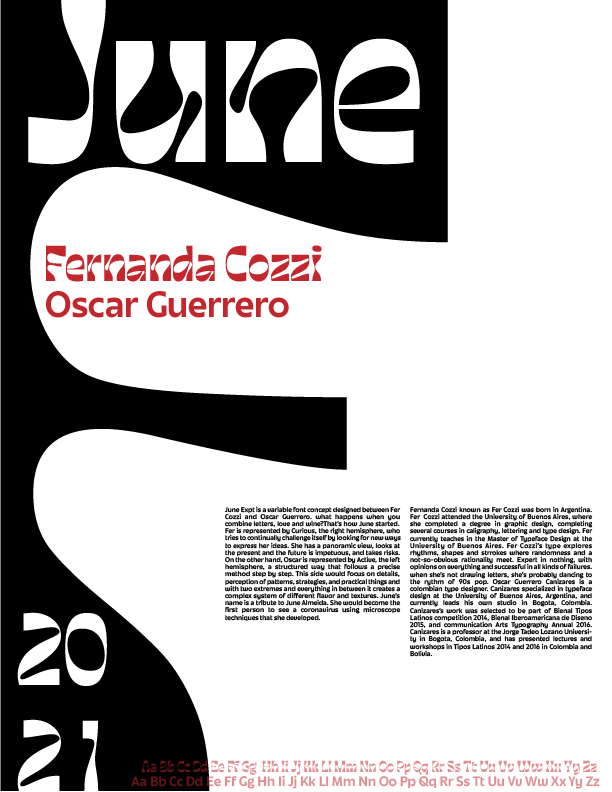 This was a typography poster design that i created for my typography class. This poster was about two latin typography designer, that design June Expt with two different version of the typeface called Curious and Active.